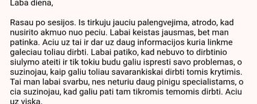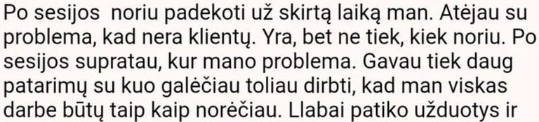 Po apmokėjimo: per 1 d.d. atsiųsiu visą informaciją kaip pasiruošti susitikimui.